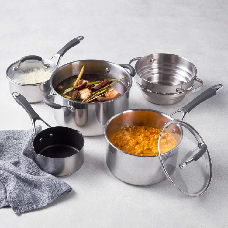 Avoid using high heat unless you’re boiling water or searing meat. Medium or medium-high heat is usually ideal for most tasks. Stainless steel retains heat well, so you rarely need to crank up the burner.