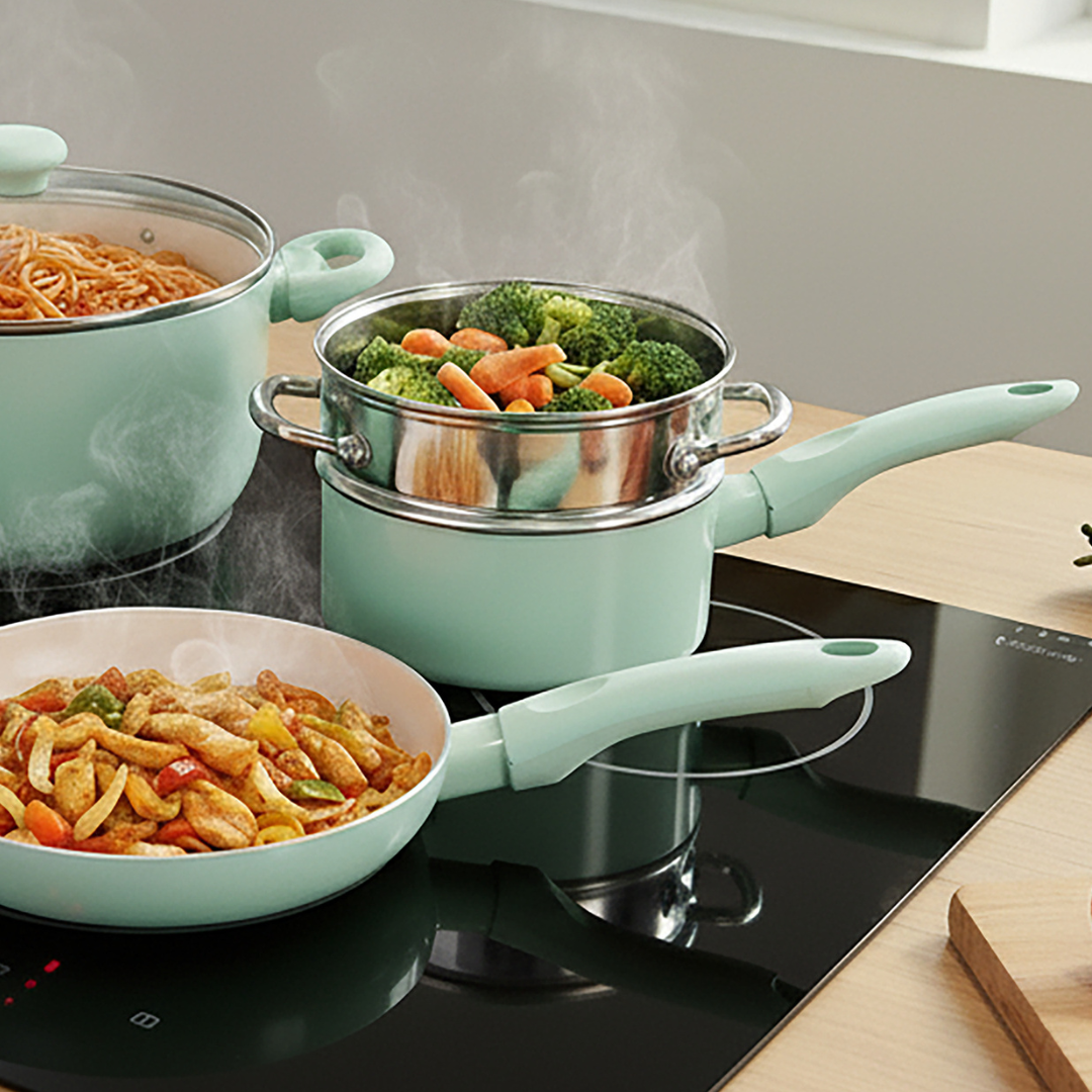RACO SmartStart Ceramic Nonstick Induction 6 Piece Cookware Set With Pan Protectors Lichen