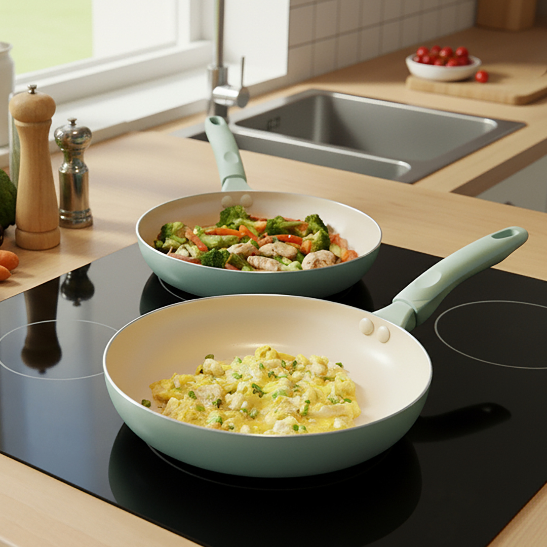 RACO SmartStart Ceramic Nonstick Induction Twin Pack Frypans 22cm/28cm Lichen