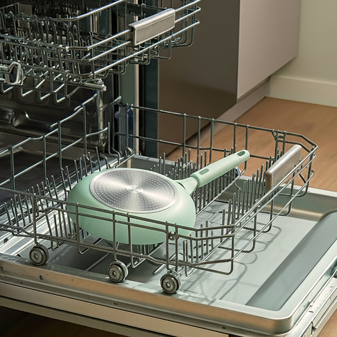 SmartStart Ceramic can be washed in the dishwasher, but hand washing is recommended (as with all nonstick cookware) to prolong its lifespan and nonstick properties. You can usually hand wash it with warm, soapy water. Avoid using abrasive scrubbers or metal utensils that can damage the ceramic coating.