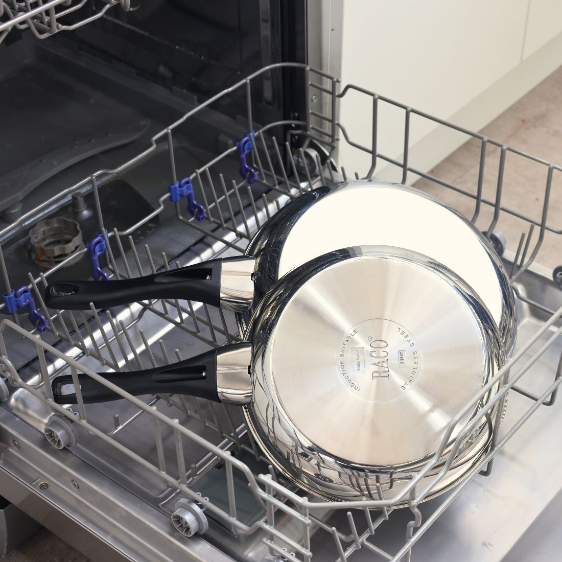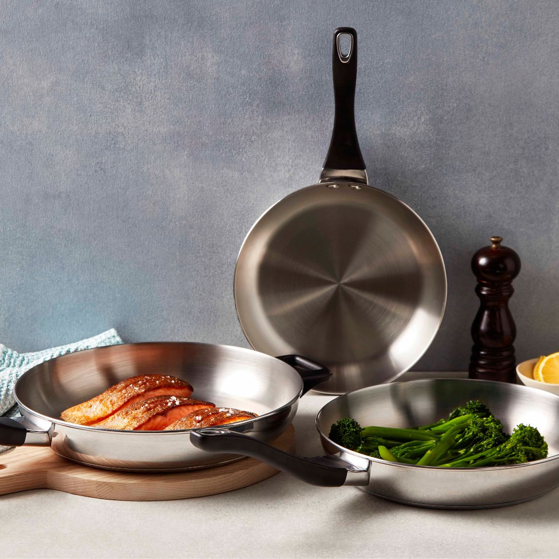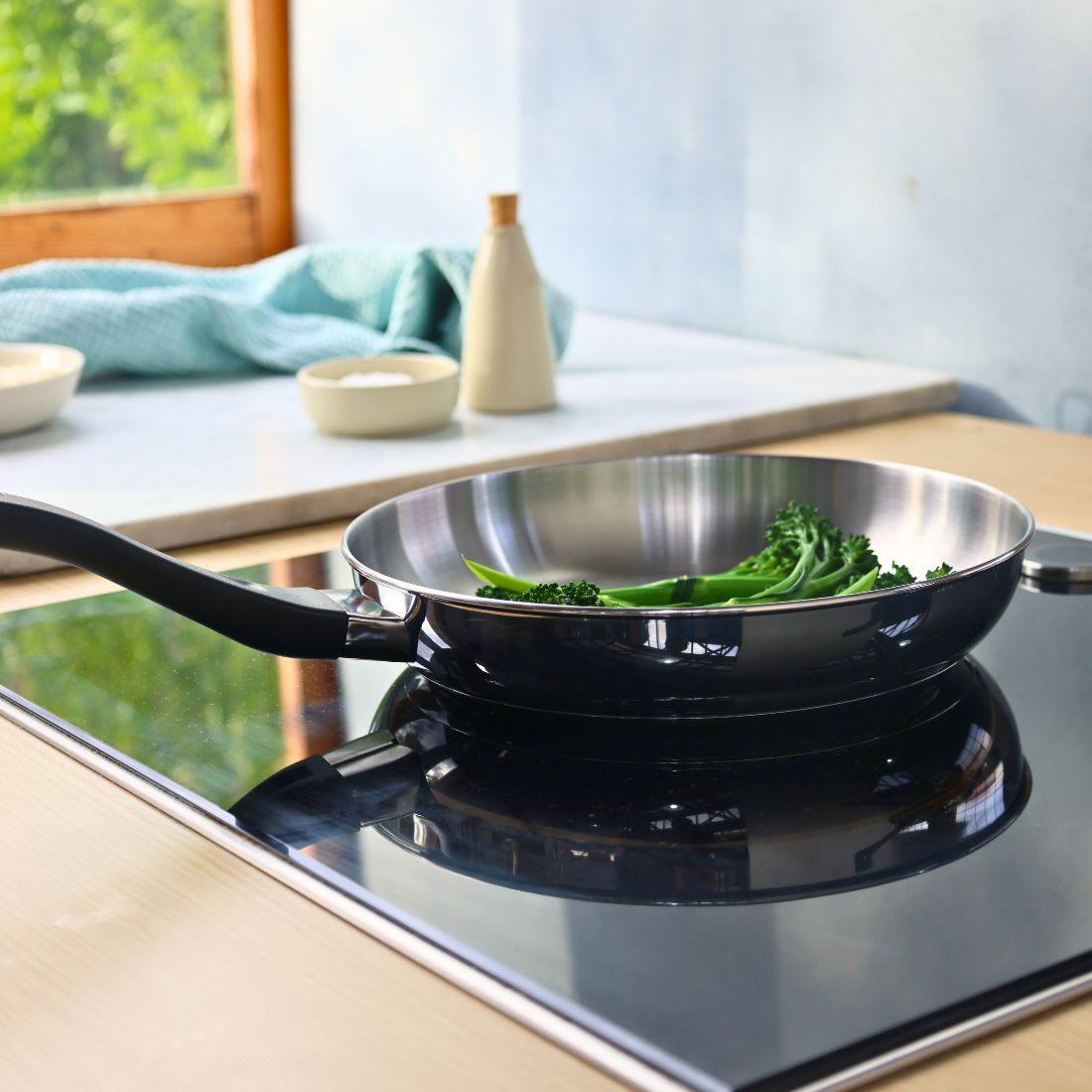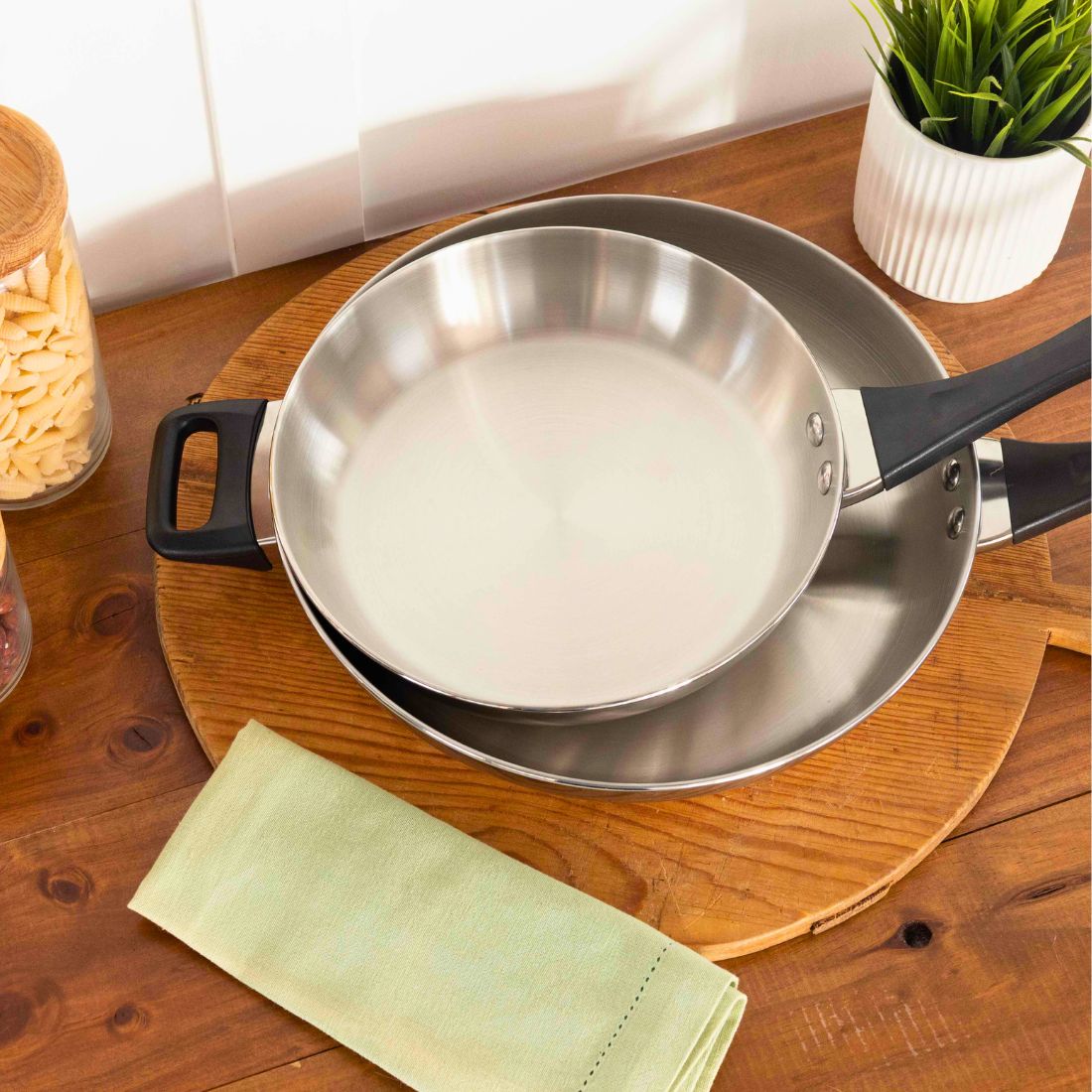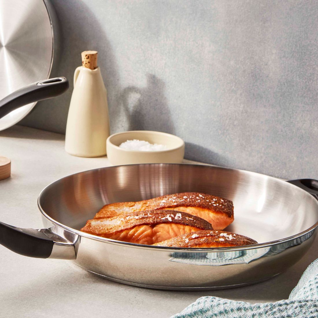 RACO Eversteel – Built to Shine, Made to Last. Made from premium stainless steel, RACO Eversteel brings shine, durability, and everyday confidence to your kitchen. The 28 cm frypan is perfect for searing and sautéing, with even heat distribution and reinforced rims for extra durability. Cool-touch handles, metal utensil safe, PFAS/PFOA free, and dishwasher safe. It’s cookware you can count on, every day.