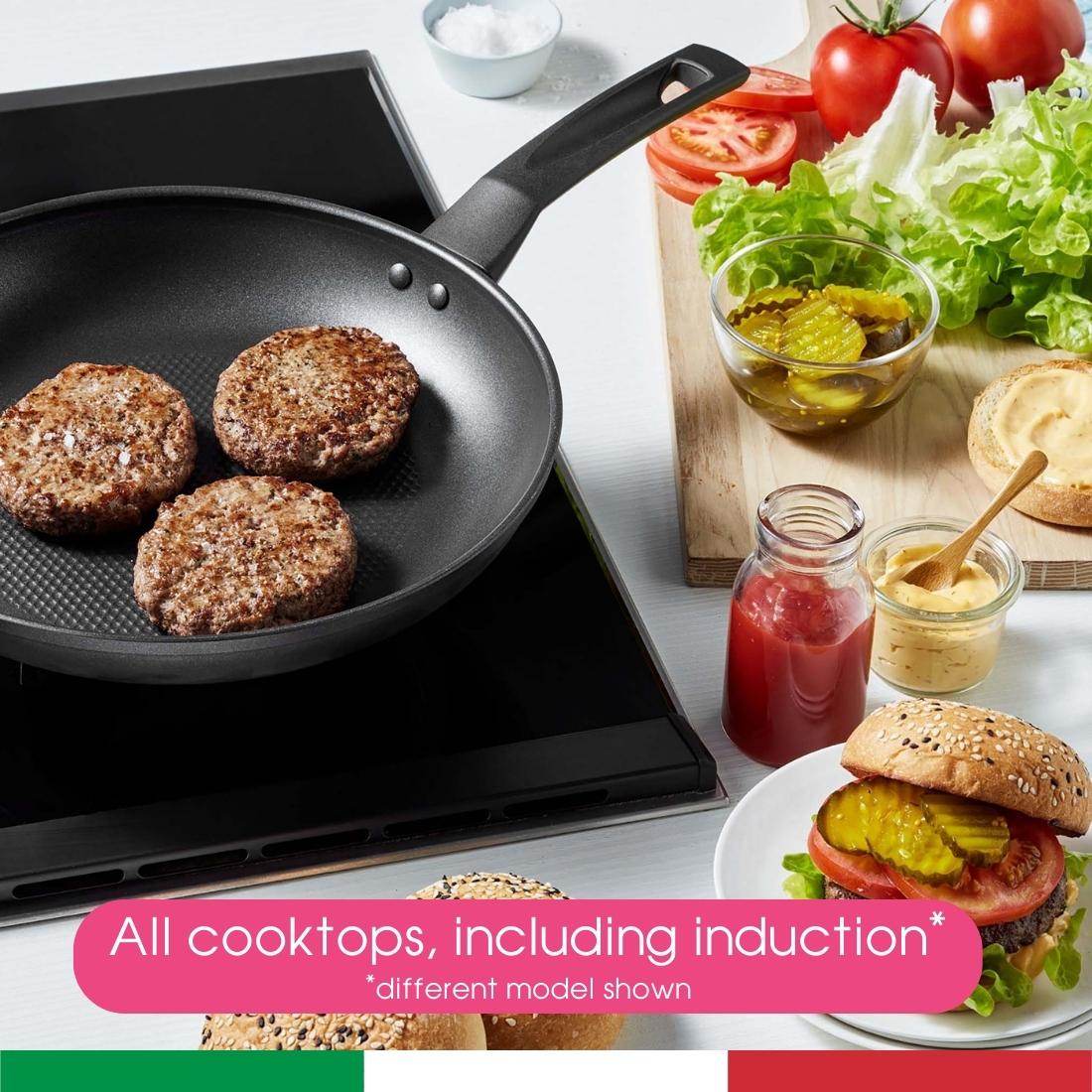 Suitable for all cooktops including induction and dishwasher safe, every piece in this set is built to last in the toughest family kitchen conditions. The triple-layer nonstick interior is reinforced with hard mineral particles, making the cookware perfect for intensive use.