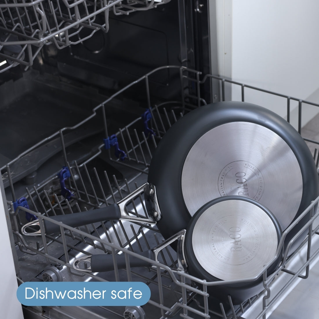 RACO® Reliance is a collection of superior quality cookware that perfectly represents the RACO® brand affordably priced, excellent quality and designed to perform. This hard anodised 5 piece set is dishwasher safe, oven safe and suitable for all cooktops. High quality nonstick cooking and silicone stay cool handles for a safe, secure grip.