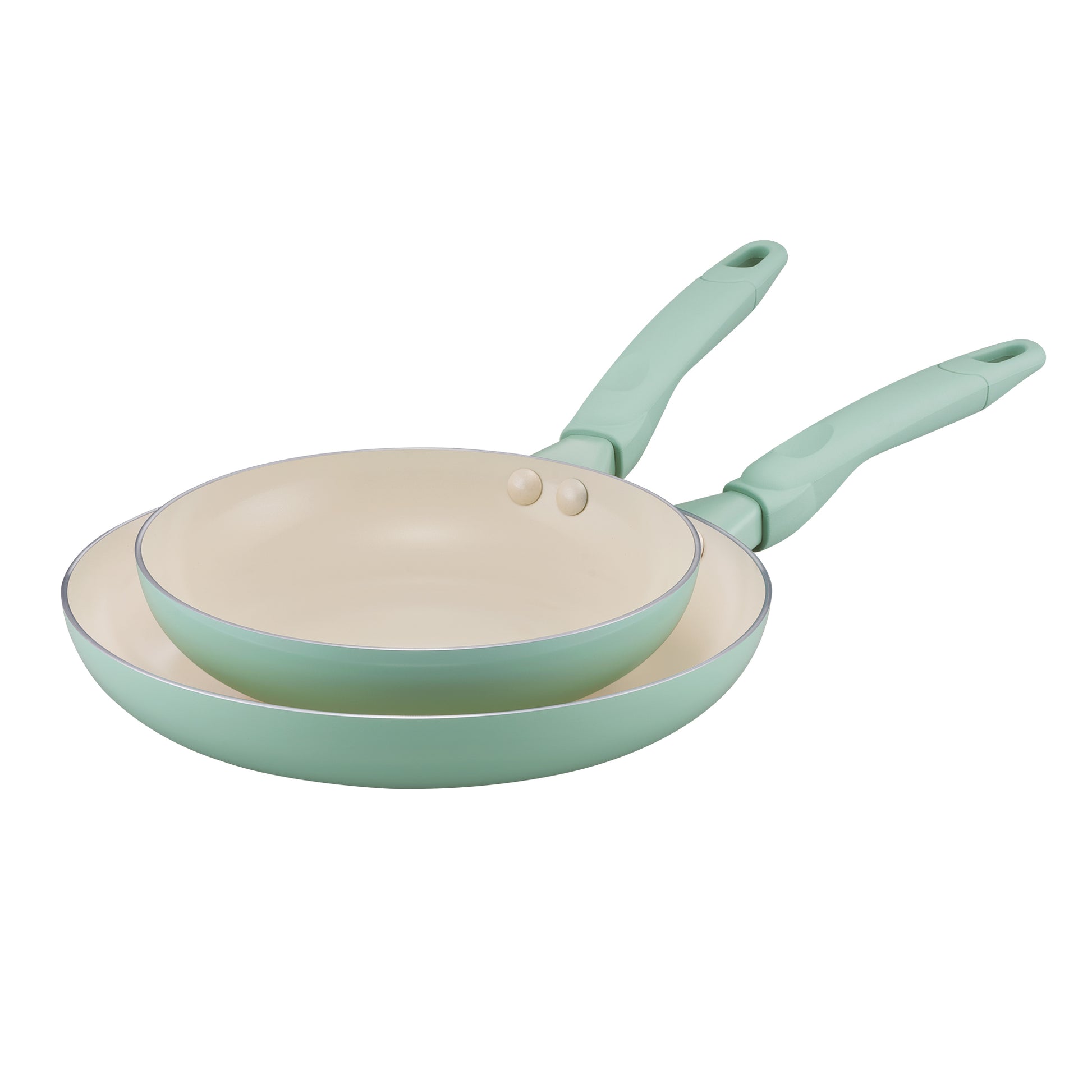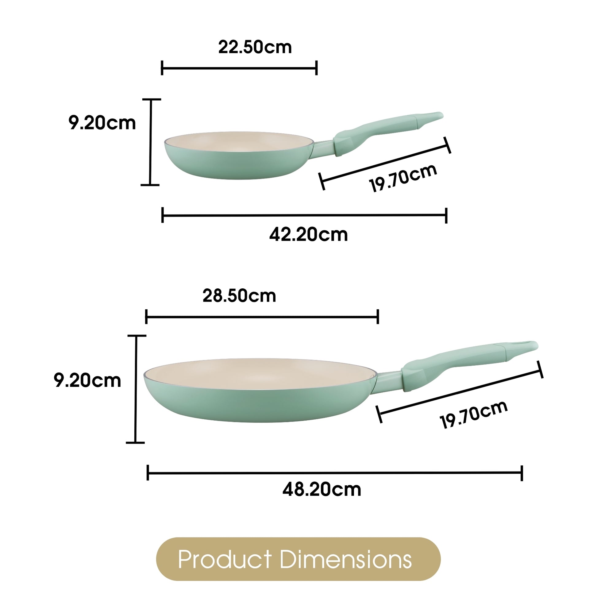 The perfect duo for any kitchen, the RACO SmartStart Ceramic Twin Frypan Pack Lichen includes 22cm and 28cm pans designed for everything from morning eggs to hearty dinners.