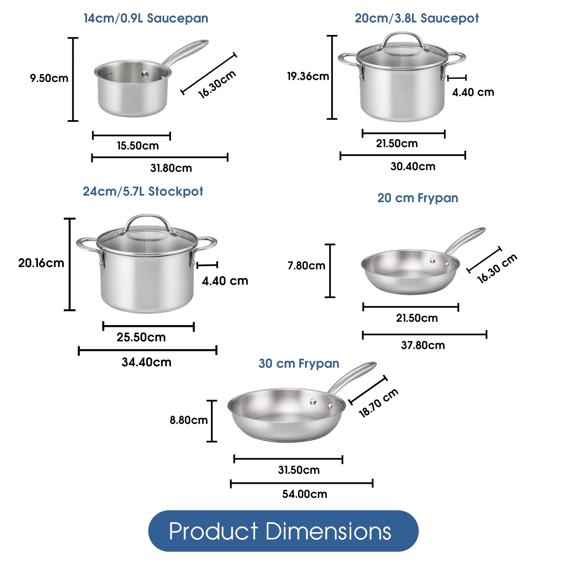 This 5-Piece Cookware Set has all the pieces you need for family cooking. Perfect for simmering sauces, boiling pasta, or frying up a quick weeknight stir-fry.